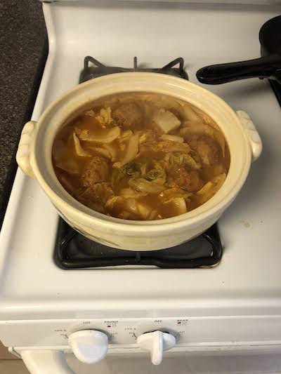 これは本日作ったキムチ鍋。アメリカでも白菜が一部のスーパーでNappa cabbage(ナッパキャベジ)の名前で売られている。味も悪くないと思う。